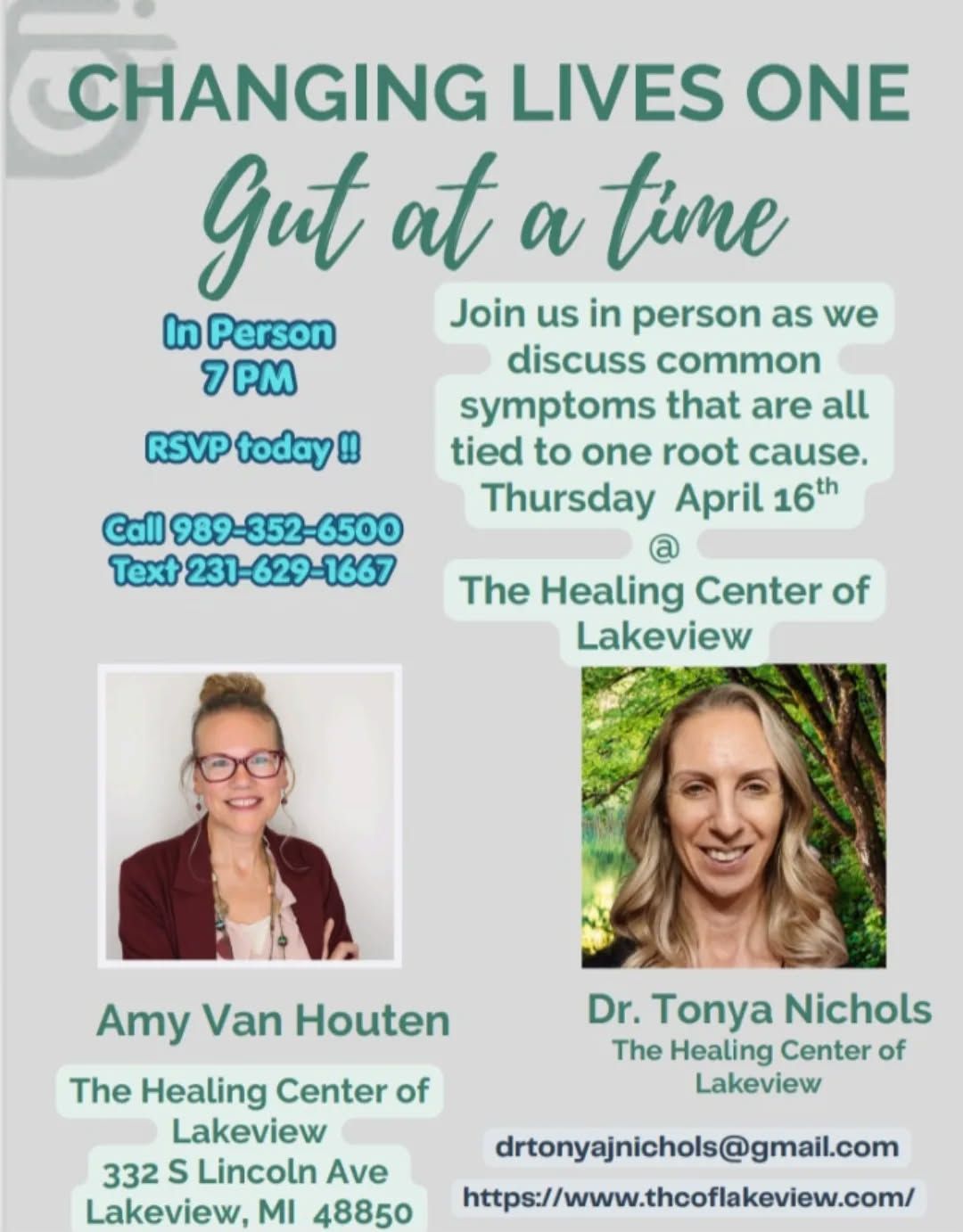 Please call or text Tonya at 231-629-1667 or Jamie at 616-889-2070 to register for the class.
